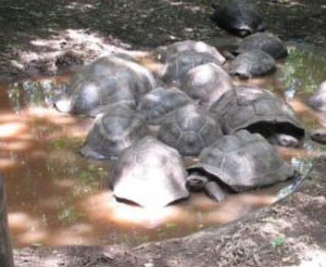 - Please do not feed or touch the tortoises.